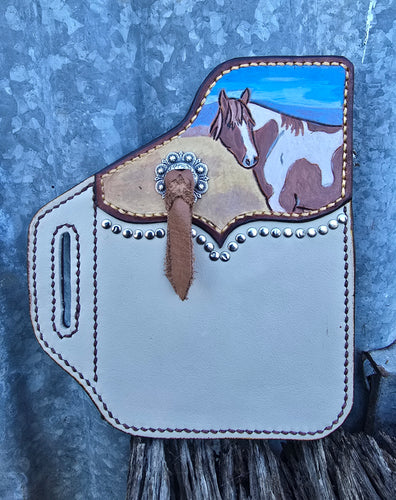 Western Style Belt Phone Pouch - Paint Horse, Concho and Studs