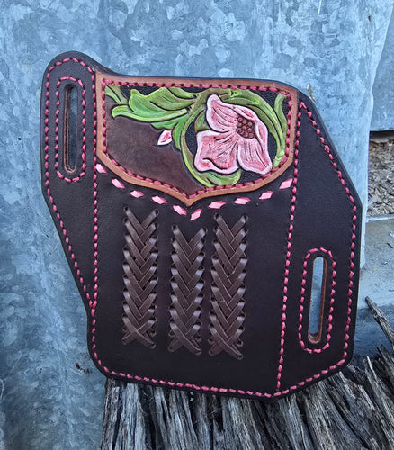 Western Style Belt Phone Pouch - Pink Floral and Lacing