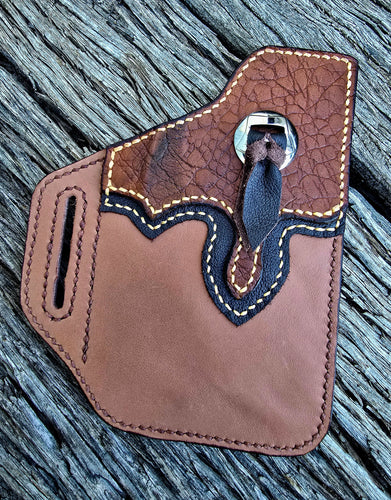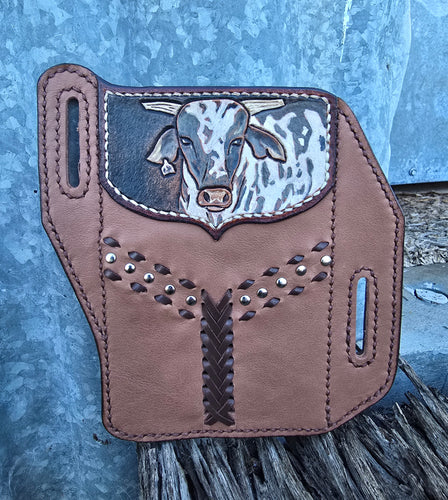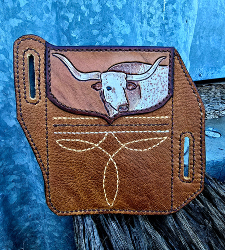 Western Style Belt Phone Pouch - Texas Longhorn Boot Stitched